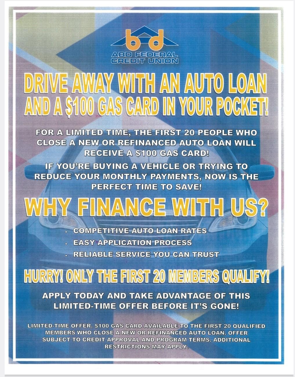 ABD Credit Union $100 Gift Card Promotion
